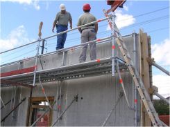 Sicherheit mit System, auch auf dem Flachdach, mit dem bewährten Allround-Gerüst.