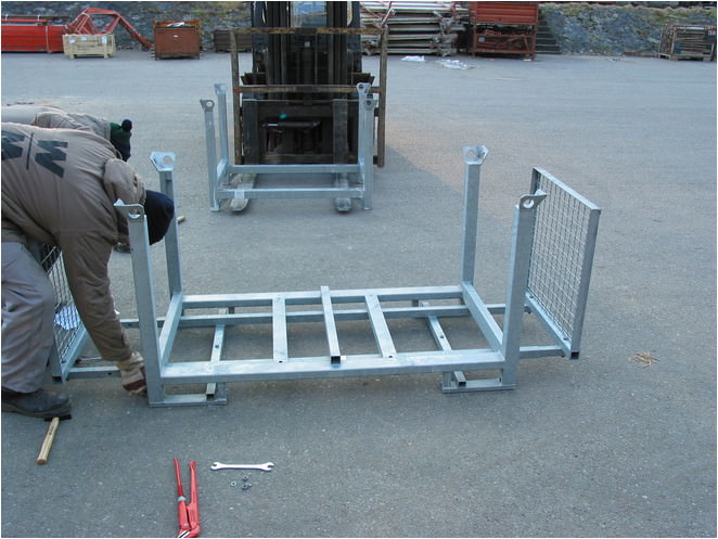 Das Layher-Palettensicherungsgestell macht aus den Euro-Modulpaletten eine sichere Lastaufnahmeeinrichtung für Baustützen.